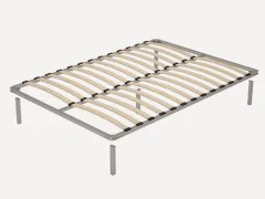 Каркас кровати установлен на хромированные опоры высотой 100 мм, закрепленные к металлическим уголкам внутри каркаса кровати. Высота царг от пола составляет 350 мм, матрас утоплен на 50 мм, а высота матраса не ограничена.